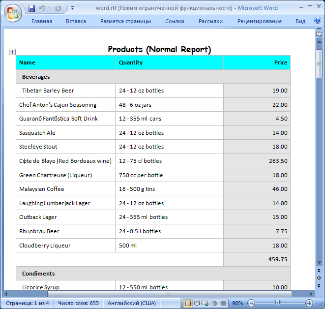 Готовый отчет в MS Word
